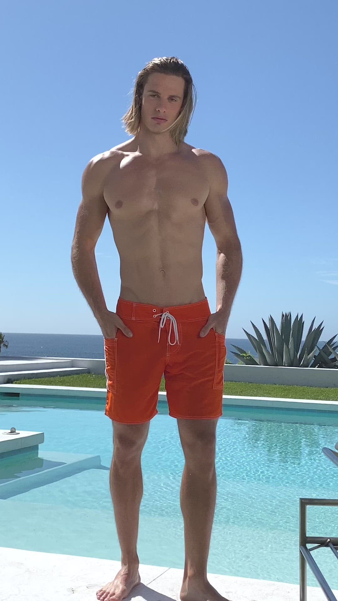Midlength classic banded surf short. Modern colors update our perfect fitting classic boardie. Two side pockets for style and storage with stripe details. Surf styled lace-up front.